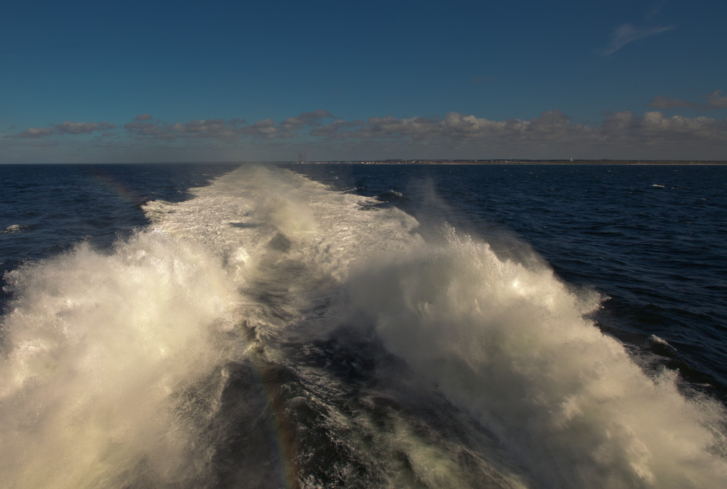 Dieses Mal zeigte uns das Navi an, dass wir kurz nach zwei Uhr bei dem Fährhalteplatz ankommen. Da uns Unterwegs noch in den Sinn gekommen ist, dass wir keine Badetücher eingepackt haben, machten wir in Dänemark noch einen kurzen Einkaufs- und Essensstop, wir hatten ja genügend Zeit dafür, denn die Fähre fuhr erst um fünf los. Dort haben wir uns dann auch endlich mit unseren Freunden, der Familie Chollet getroffen. Sie haben einen anderen Reiseweg gewählt. Sie sind nämlich das Auto in Lörrach auf den Zug verladen und sind über Nacht nach Hamburg gefahren.